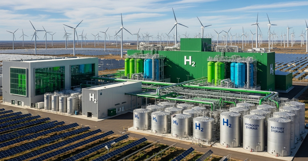 Além disso, o hidrogênio verde pode ser armazenado e transportado com mais facilidade que a energia elétrica, funcionando como uma espécie de “bateria gigante” de energia limpa.